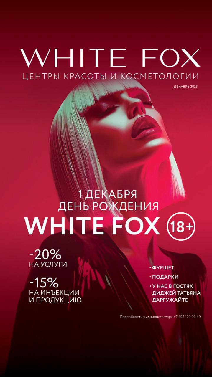 1 декабря центрам красоты и косметологии White Fox исполняется 18 лет! Возраст когда уже можно все. В честь своего 18-летия White Fox устраивают праздник в стиле «18+» и ждут всех в центрах красоты и косметологии на особое событие.