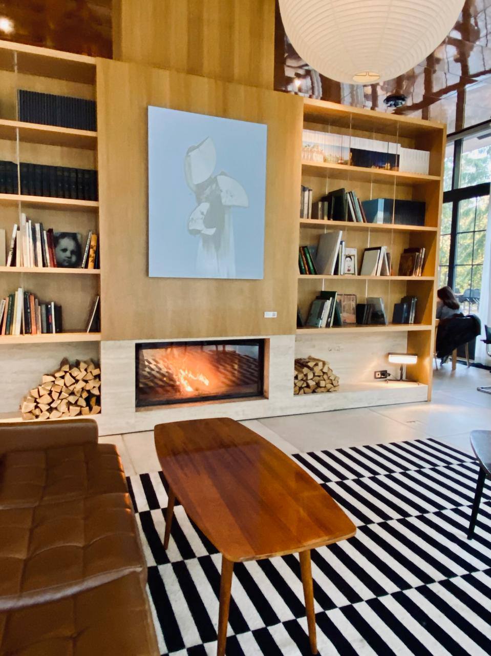 🔸в ресторане Библиотека в Переделкино можно выпить кофе или чай на уютном диване у камина, полистать книги и насладиться видом на старый писательский поселок через панорамные окна.