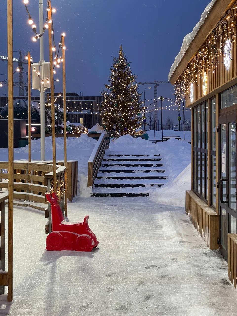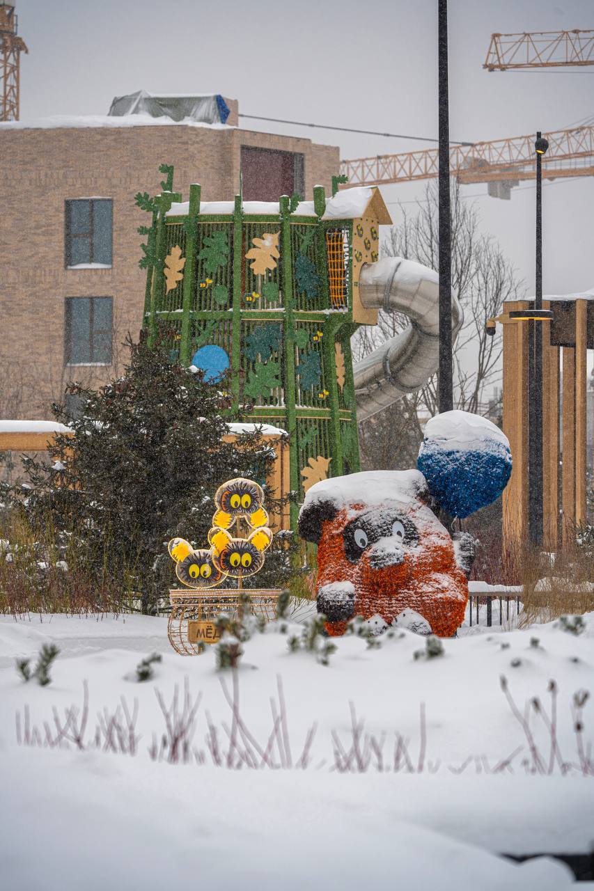 Если захочется немного согреться и узнать больше о районе будущего, загляните в Шоурум СберСити, который находится рядом. Здесь можно познакомиться с концепцией «умного» города, технологиями, планировками квартир. А для самых маленьких рядом с Шоурумом открыта яркая уличная детская площадка «Винни-Пух», созданная совместно с «Союзмультфильмом» — дети будут в восторге!