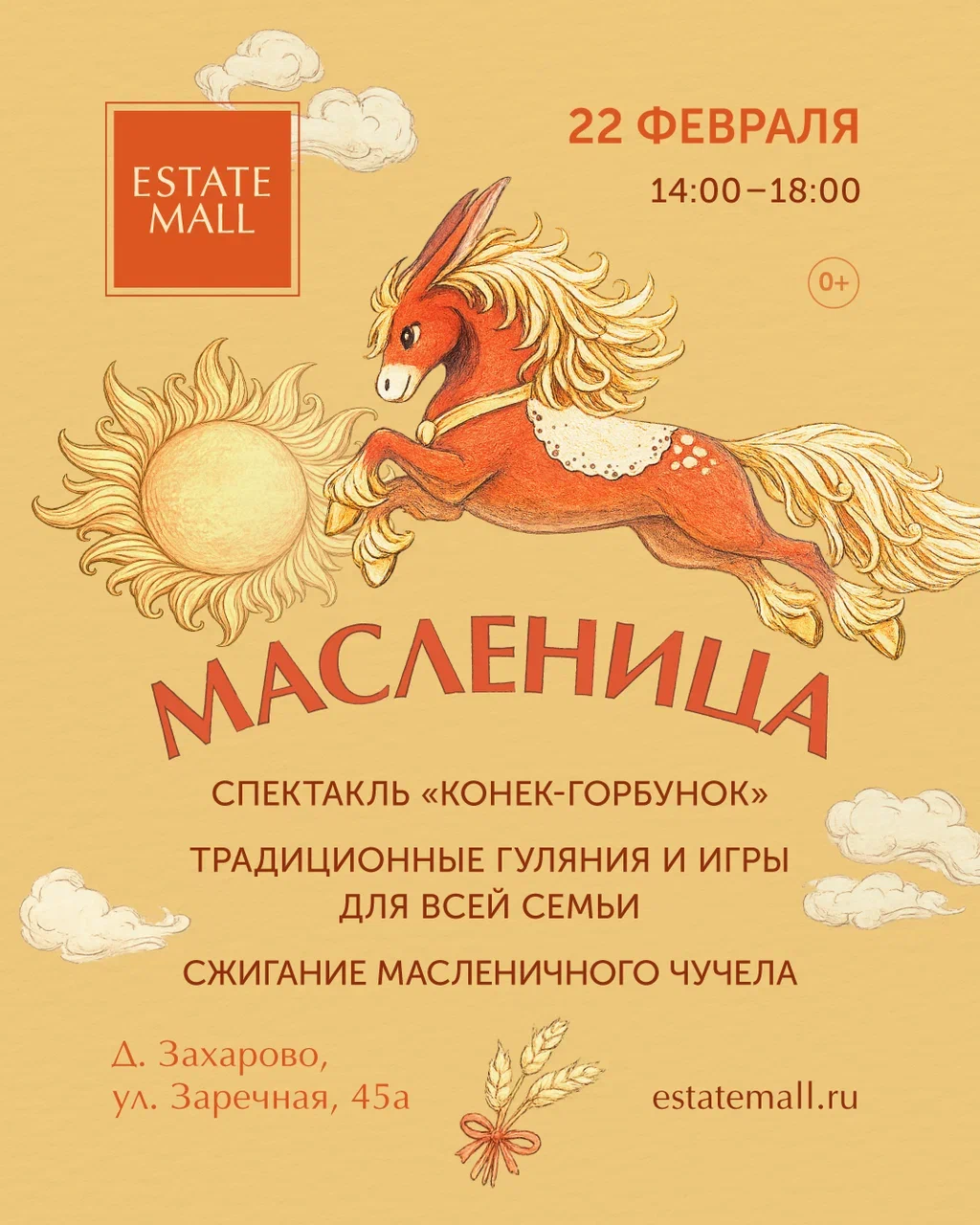 🔸 17:00-18:00 — масленичный спектакль «Конёк-Горбунок»