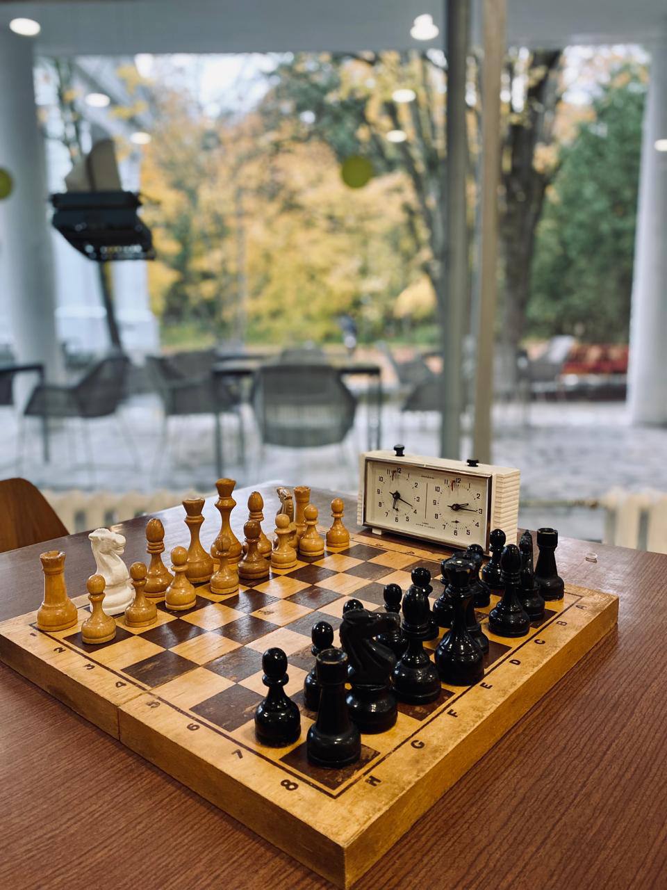 Внутри Дома писателей библиотека с уютными креслами, коворкинг, можно поиграть в шахматы или просто завернувшись в плед наблюдать за осенью с балкона.
